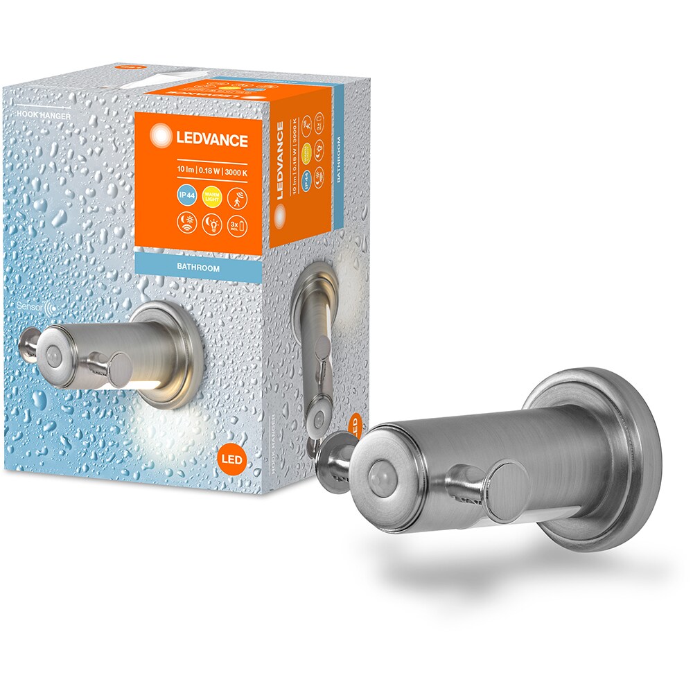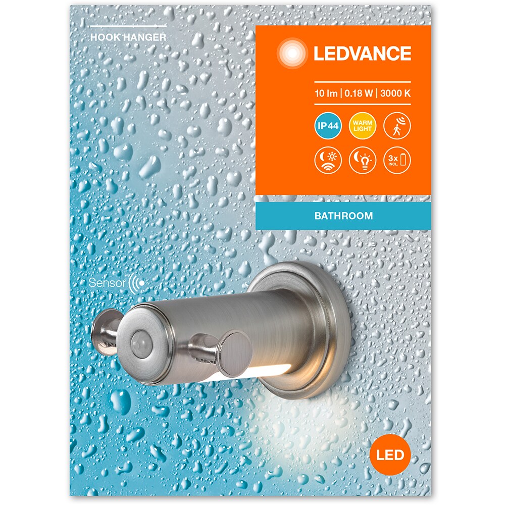 Cuier baie LEDVANCE, senzor miscare si de lumina naturala, 0.18W, 10lm, argintiu