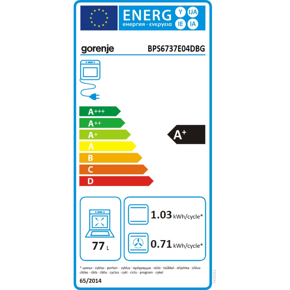 Cuptor incorporabil GORENJE BPS6737E04DBG, Electric, Autocuratare pirolitica, 77 l, Clasa A+, negru