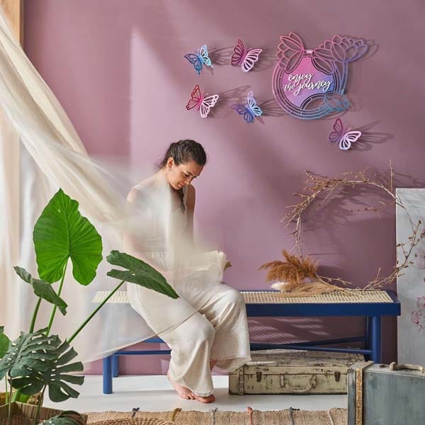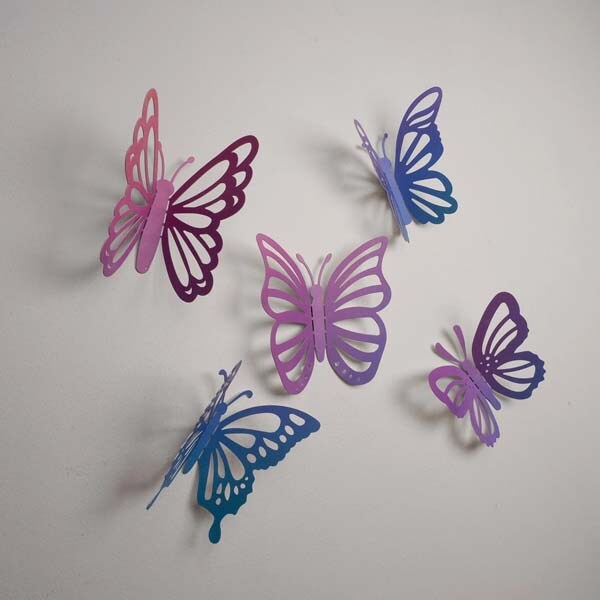 Decoratiune perete Colorful Butterfly, 17 x 14 cm, roz, albastru