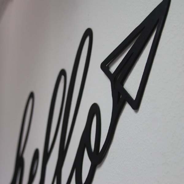 Decoratiune perete Hello Metal, 85 x 31 cm, metal, negru