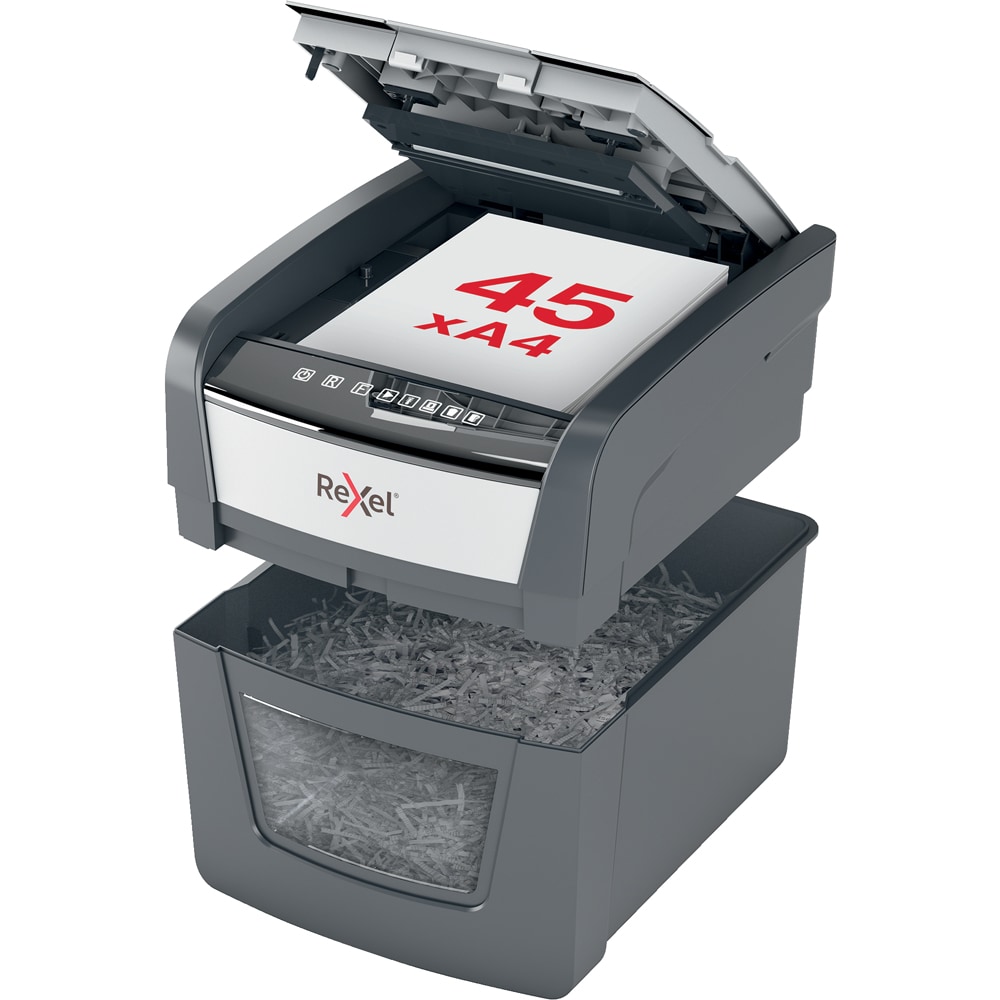 Distrugator documente automat REXEL OPTIMUM 45X, 45 coli, 20l, Cross-Cut, negru-gri