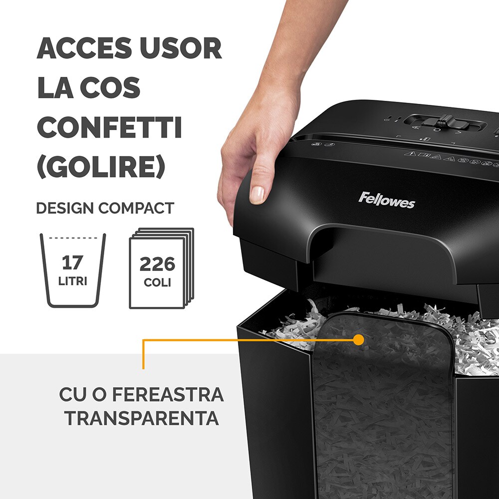 Distrugator documente manual FELLOWES LX45, 8 coli, 17l, Cross-Cut, negru