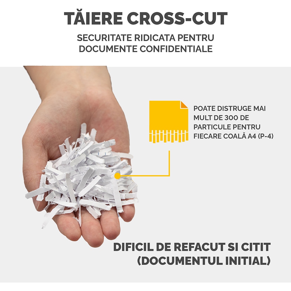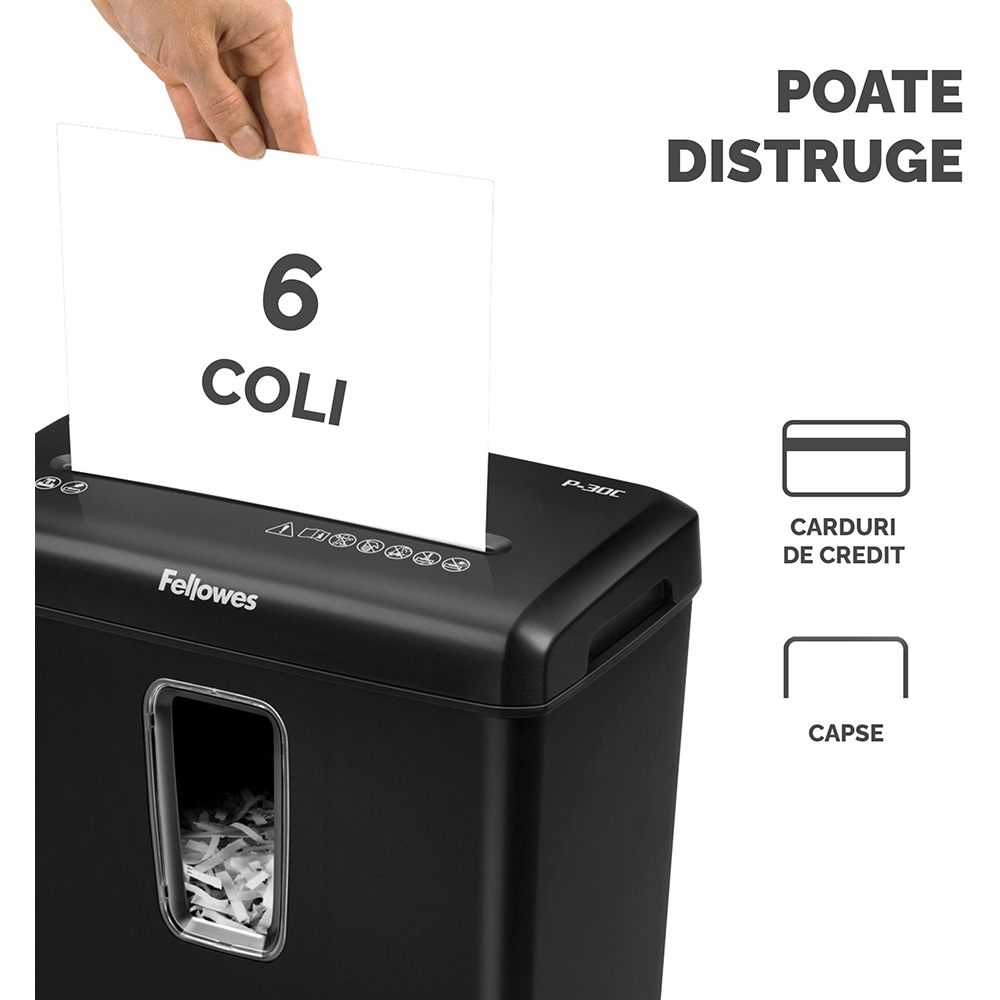 Distrugator documente manual FELLOWES P-30C, 6 coli, 15l, Cross-cut, negru