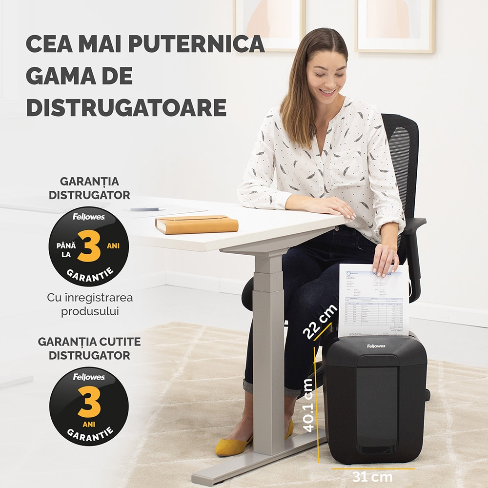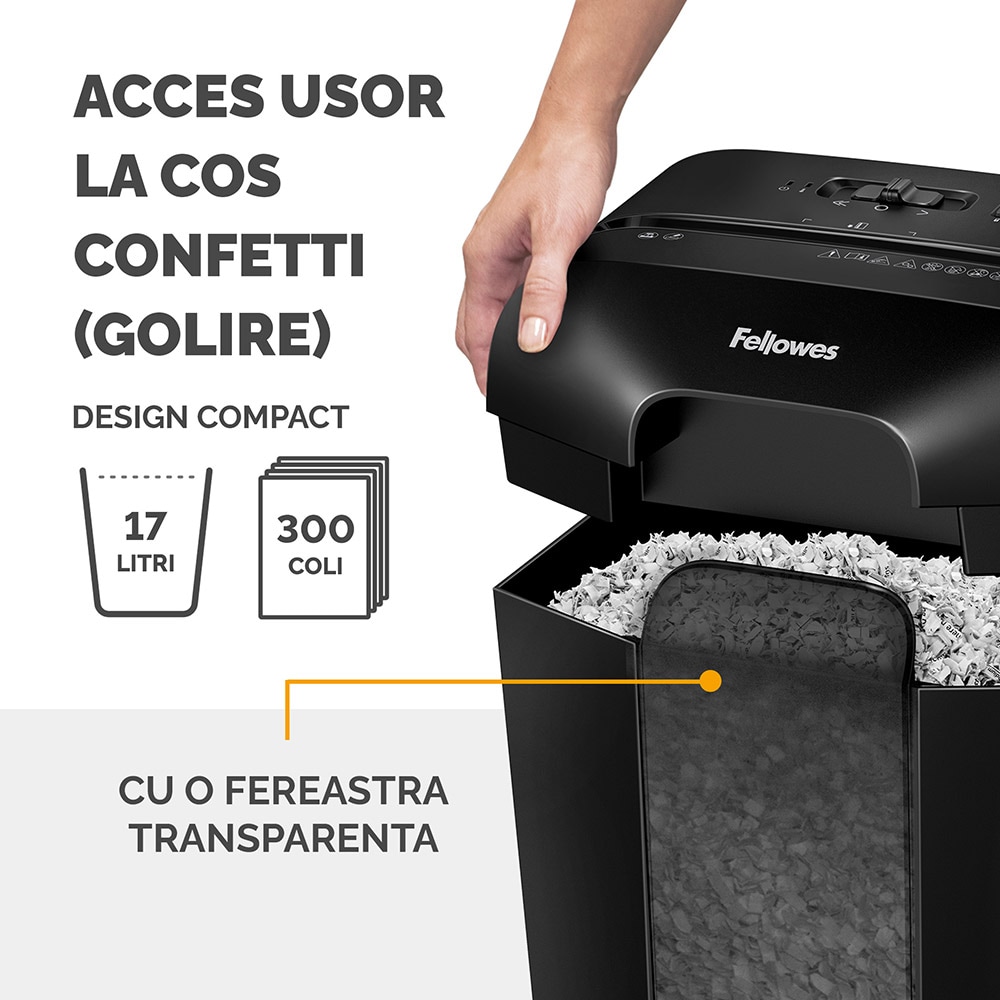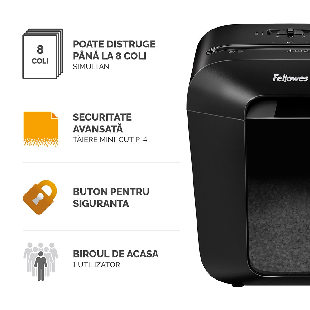 Distrugator documente manual FELLOWES Powershred LX41M, 8 coli, 17l, Micro-Cut, negru