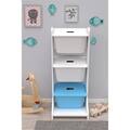 Dulap cutii depozitare TIVOLI, 44 x 35 x 107 cm, alb-albastru, 3 cutii