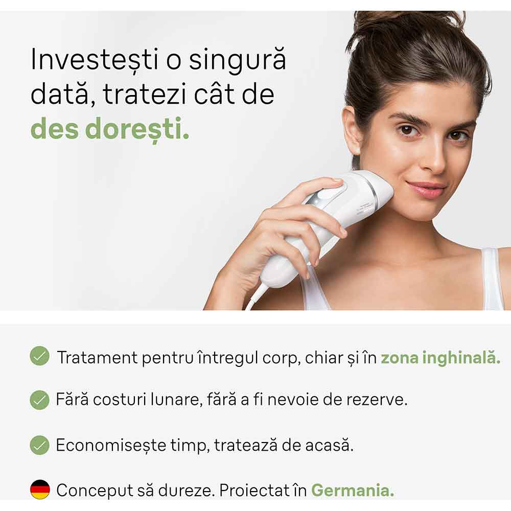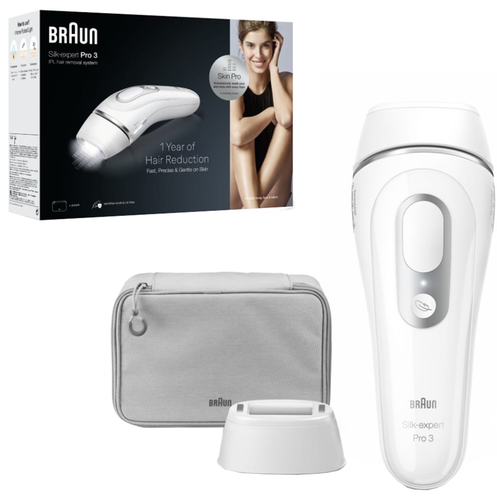Epilator IPL BRAUN Silk-expert Pro 3 PL3020, 300000 impulsuri, 10 viteze, 1 accesoriu, SkinPro, reatea, alb-argintiu