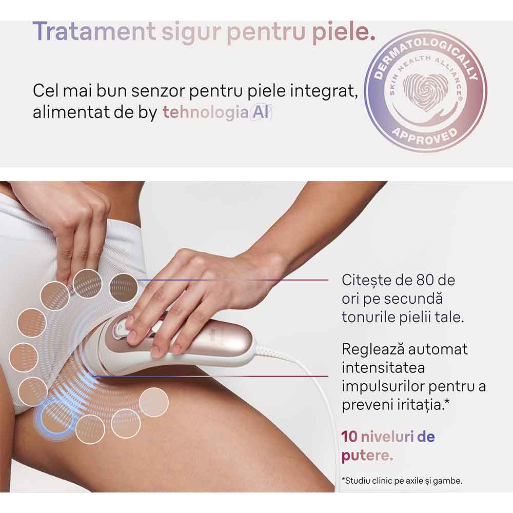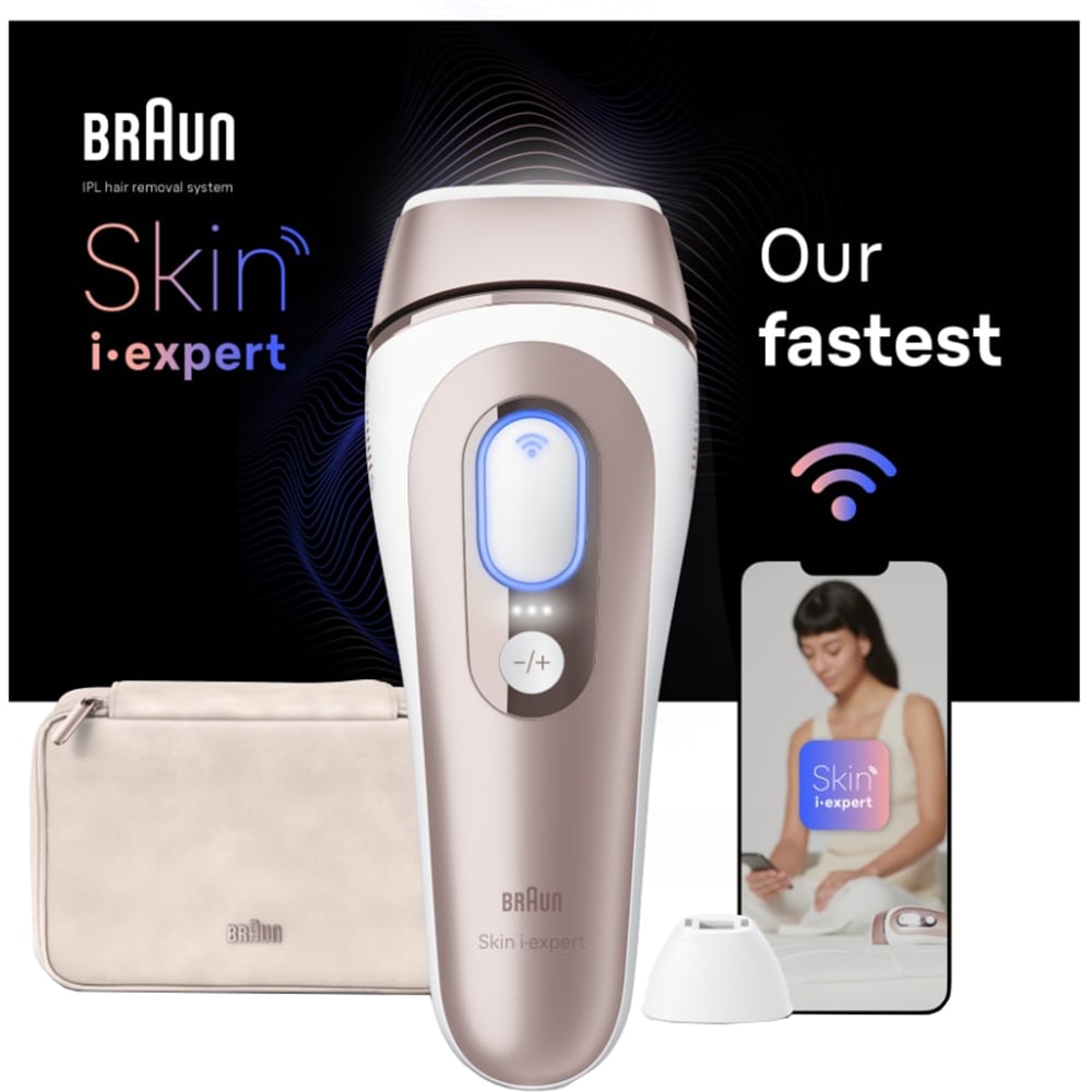 Epilator IPL BRAUN Skin i-Expert Pro 7 PL7147, 400000 impulsuri, 10 viteze, 3 accesorii, SkinPro 2.0, reatea, alb-bronz