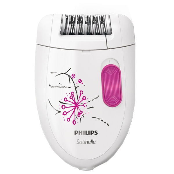 Epilator PHILIPS Satinelle Essential HP6550/01, 21 pensete, 1 penseta, retea, alb-mov + Trimmer + Penseta
