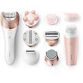 Epilator PHILIPS Satinelle Prestige BRP586/00, 32 pensete, 2 viteze, 7 accesorii, acumulator, alb-roz + Perie faciala