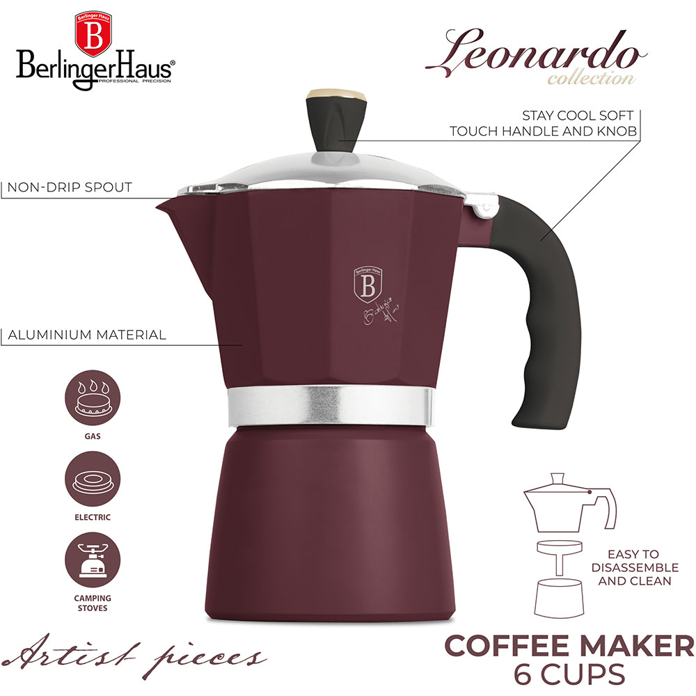 Espressor aragaz BERLINGER HAUS BH/8566N, 6 cesti, aluminiu, visiniu
