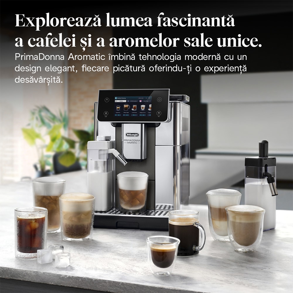 Espressor automat DELONGHI PrimaDonna Aromatic ECAM630.75.TSM, 2.2l, 1450W, 19 bar, argintiu