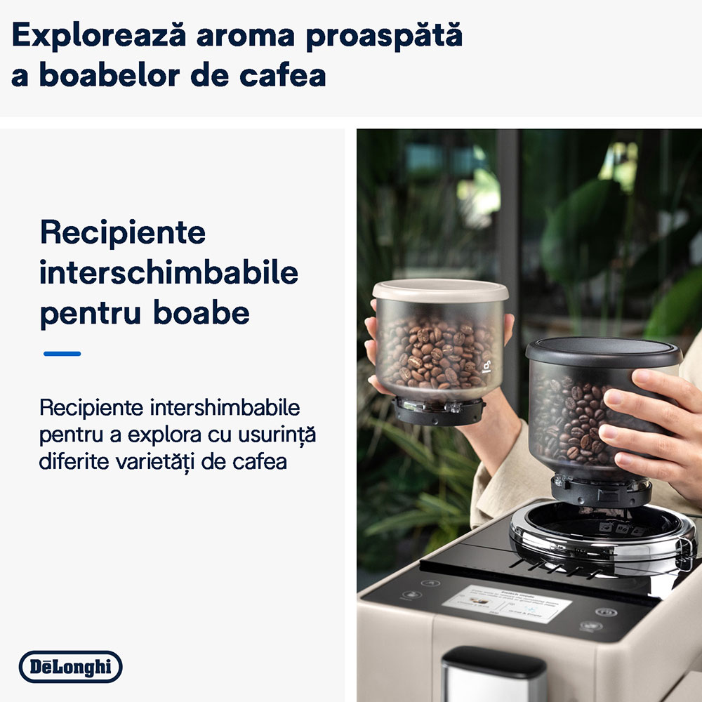 Espressor automat DELONGHI Rivelia EXAM440.55.BG, 1.4l, 1450W, 19 bar, crem-negru