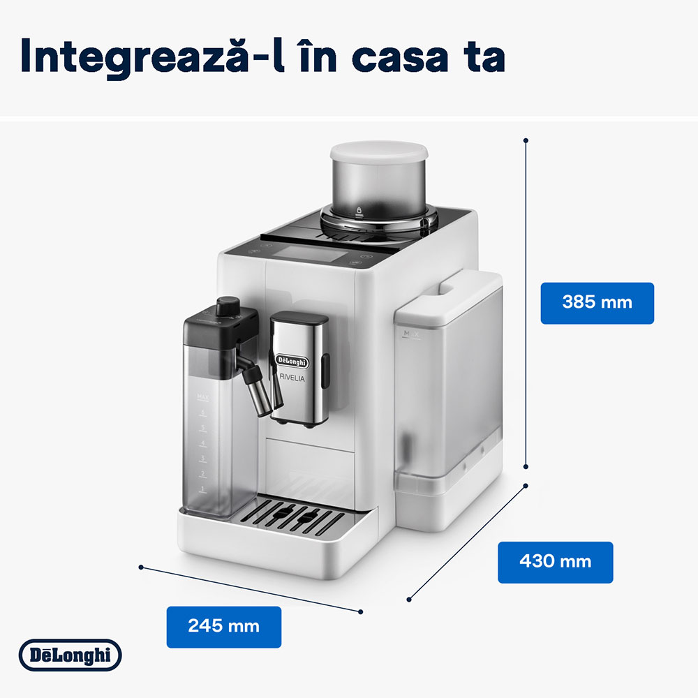 Espressor automat DELONGHI Rivelia EXAM440.55.W, 1.4l, 1450W, 19 bar, alb-negru