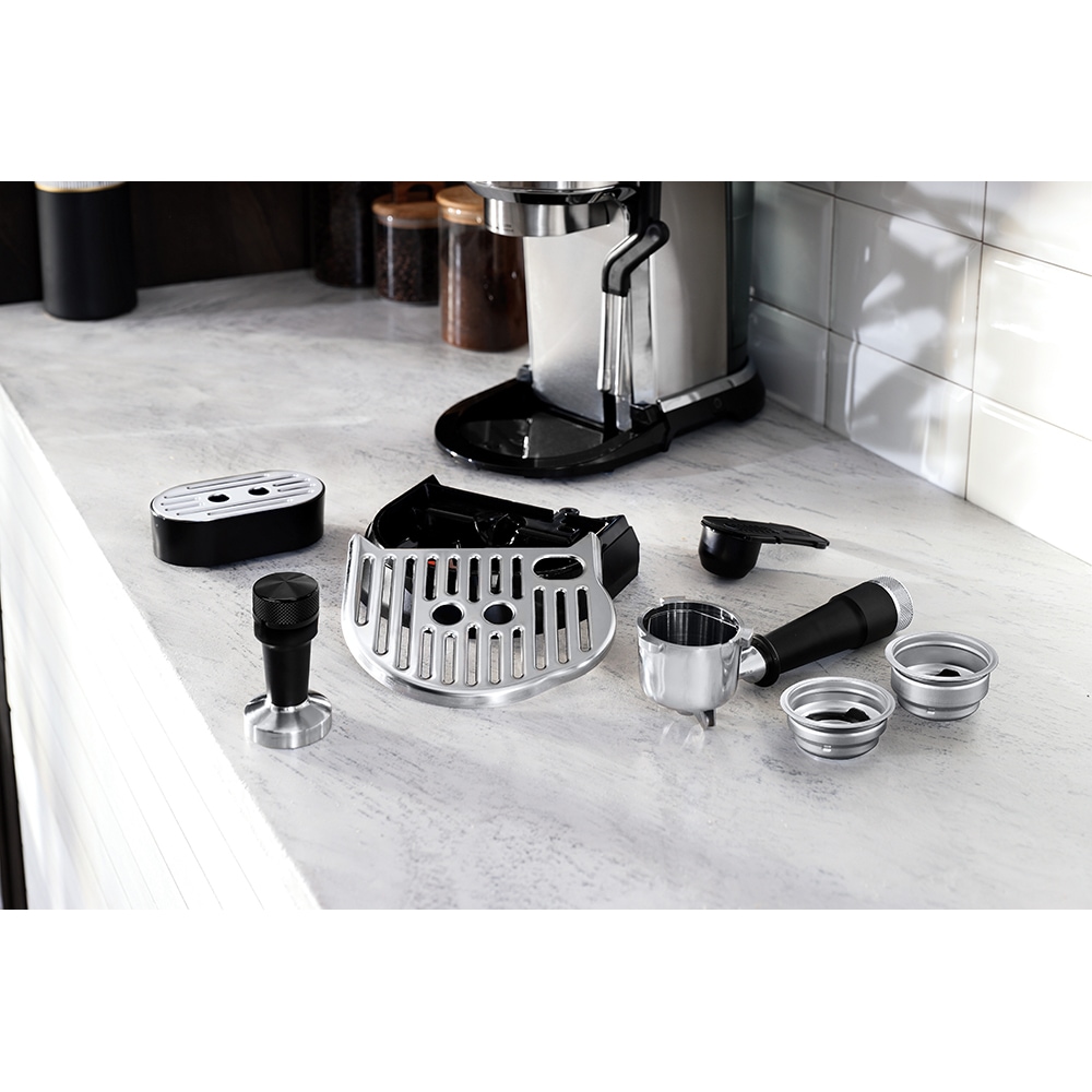 Espressor manual DELONGHI Dedica Maestro Plus EC950.M, 1.6l, 1450W, 15 bar, sistem Cappuccino, argintiu-negru