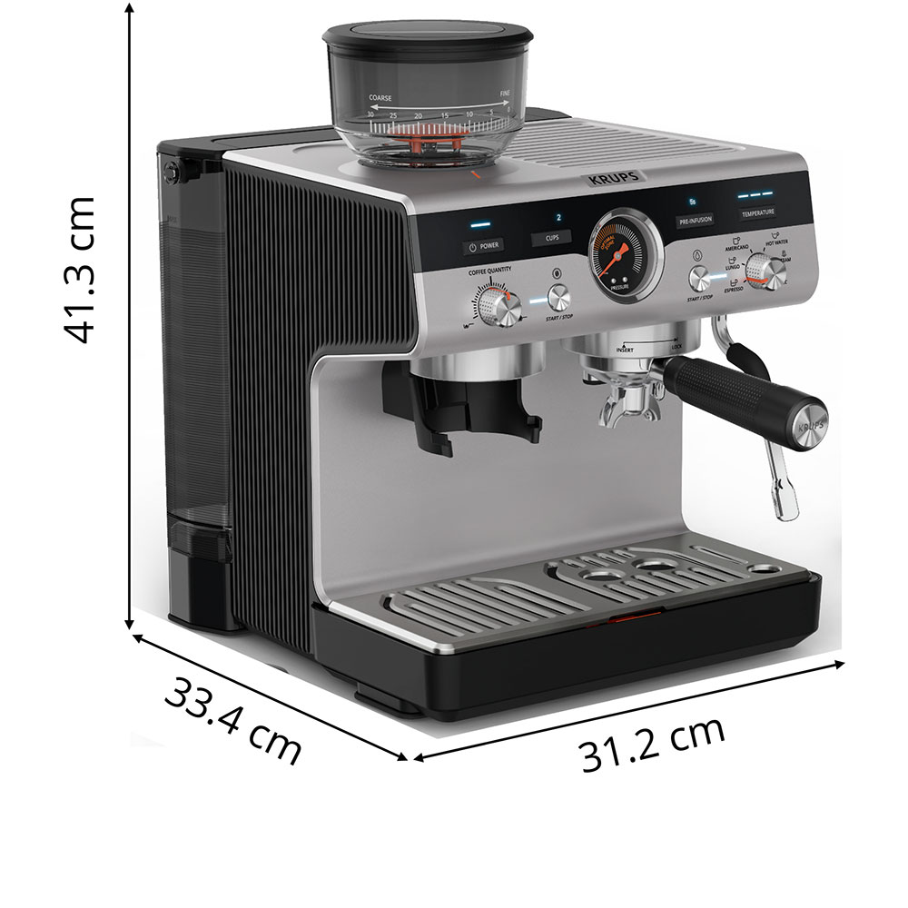 Espressor manual KRUPS Precision XP804T10, 3.5l, 15 bar, sistem Thermoblock, negru-argintiu