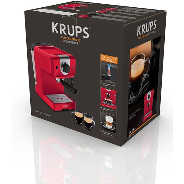 Espressor manual KRUPS Pump XP320530, 1.5l, 15 bar, sistem Cappuccino, rosu-argintiu