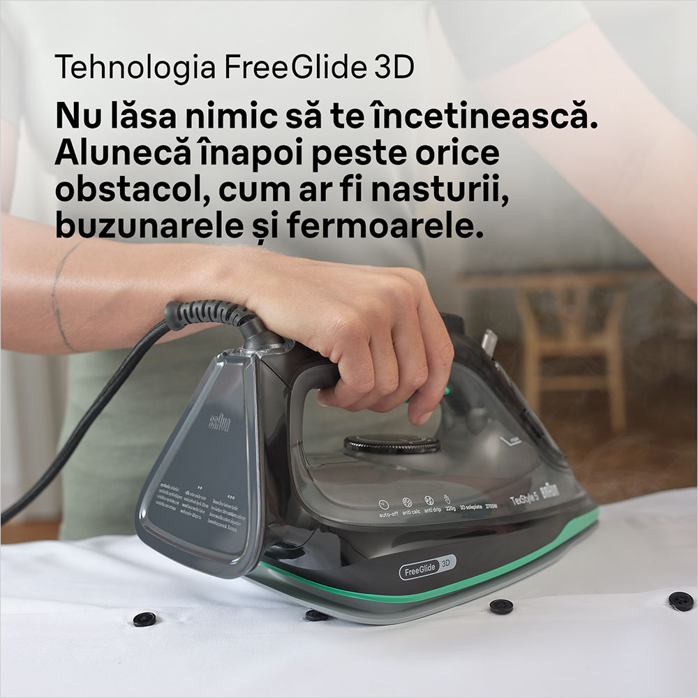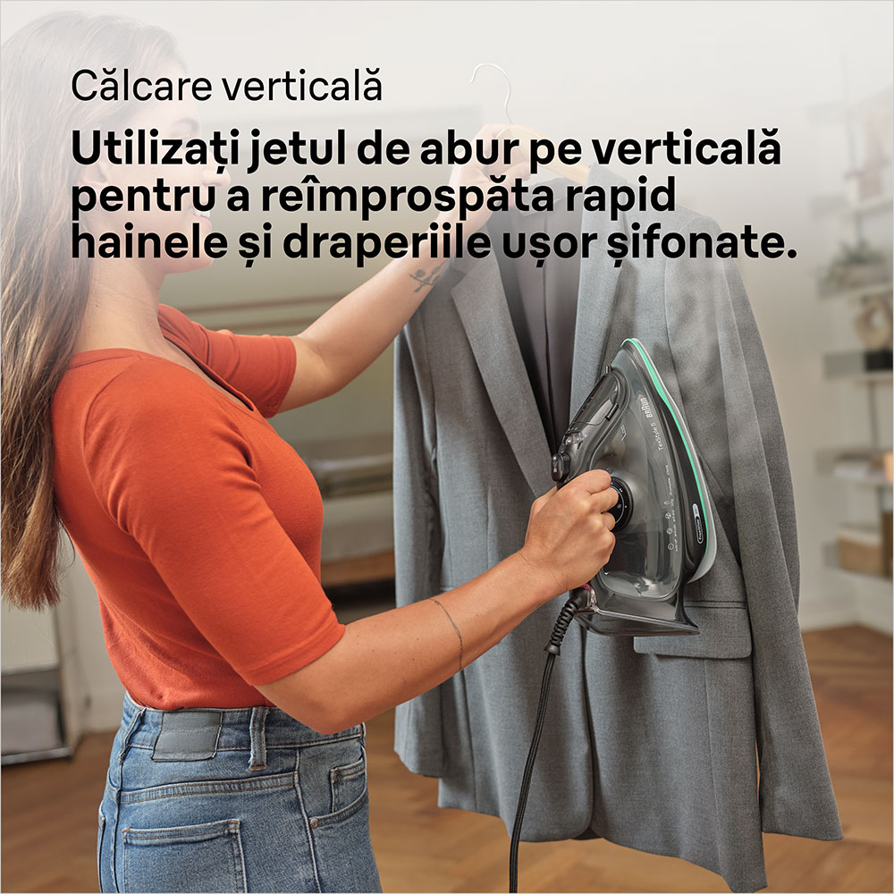 Fier de calcat BRAUN TexStyle 5 SI5277GR, 2700W, 220g/min, 300ml, talpa SuperCeramic, negru-verde