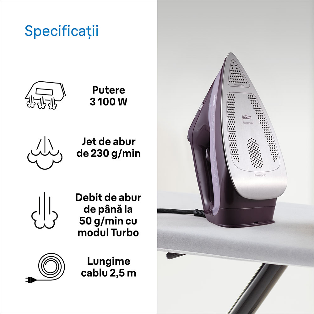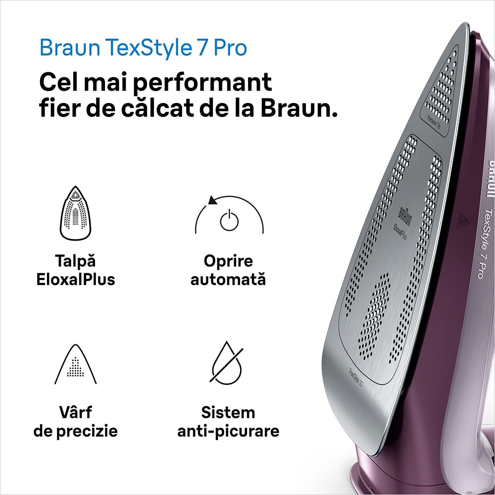 Fier de calcat BRAUN TexStyle 7 SI7181VI, 3100W, 230g/min, 300ml, talpa Eloxal Plus, violet