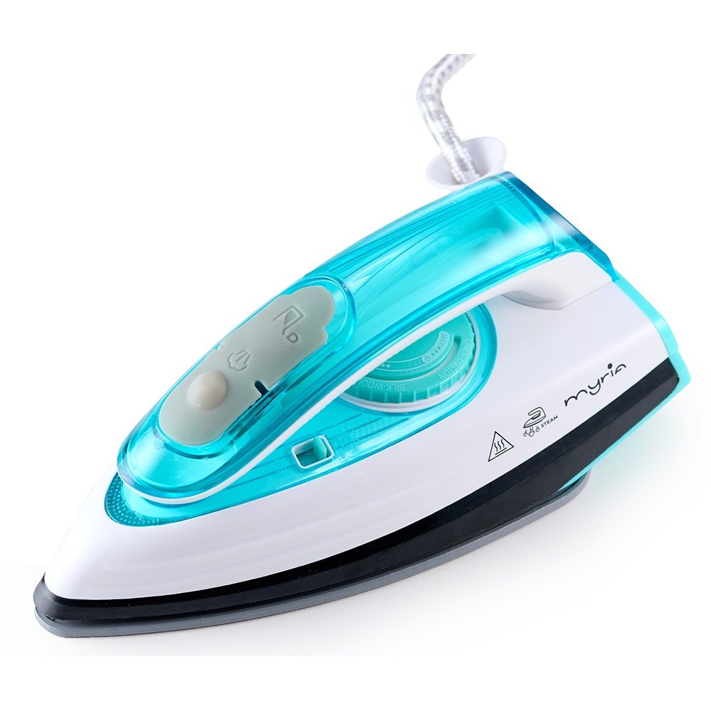 Fier de calcat pentru voiaj MYRIA MY4556, 1000W, 40g/min, 50ml, talpa ceramica, verde-alb