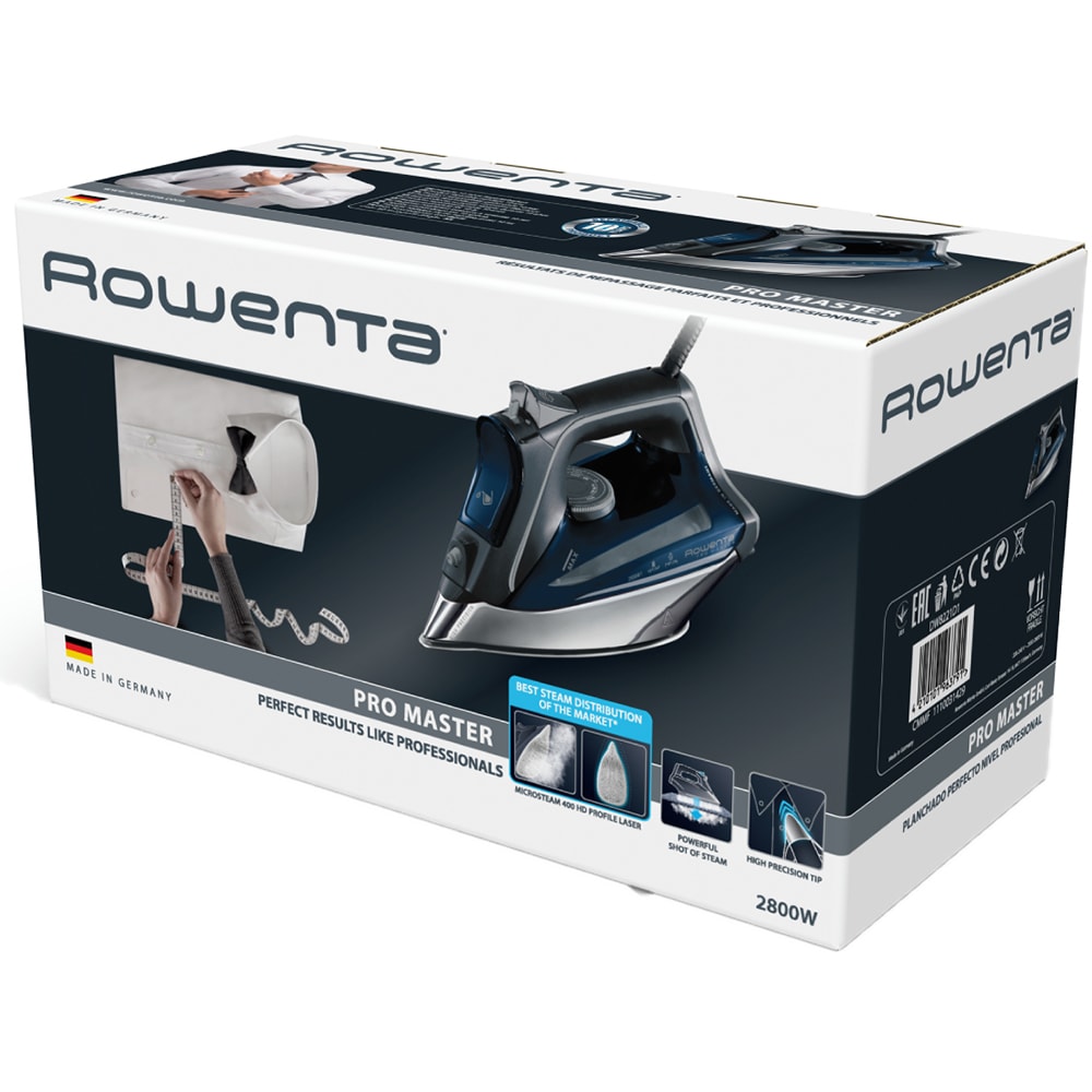 Fier de calcat ROWENTA Pro Master DW8221D1, 2800W, 200g/min, 310ml, talpa Microsteam 400 Laser, albastru inchis-argintiu