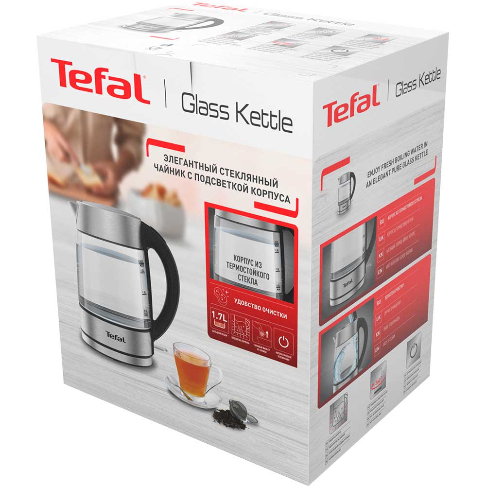 Fierbator apa TEFAL Glass KI772D38, 1.7l, 2200W, argintiu-negru