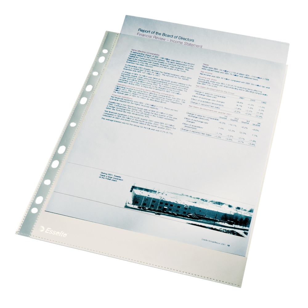 Folii protectie documente ESSELTE, A4, cristal, 40 microni, 100 bucati