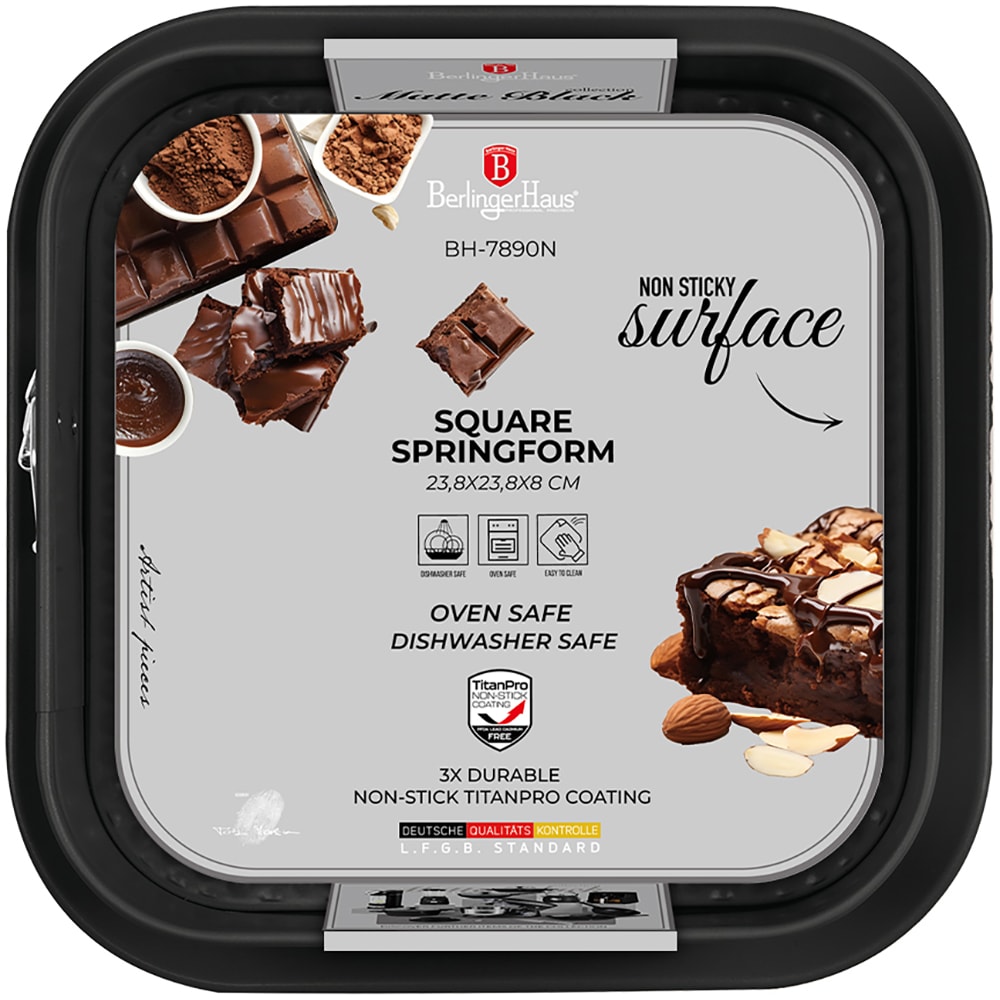 Forma de copt patrata BERLINGER HAUS BH 7890N, 28 x 28 cm, otel, negru mat