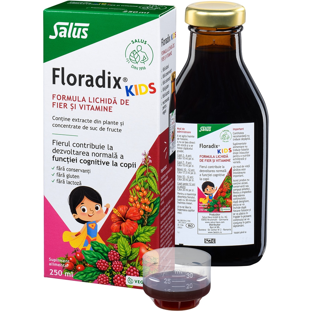 Formula lichida Floradix de fier si vitamine pentru copii, 250 ml, SALUS
