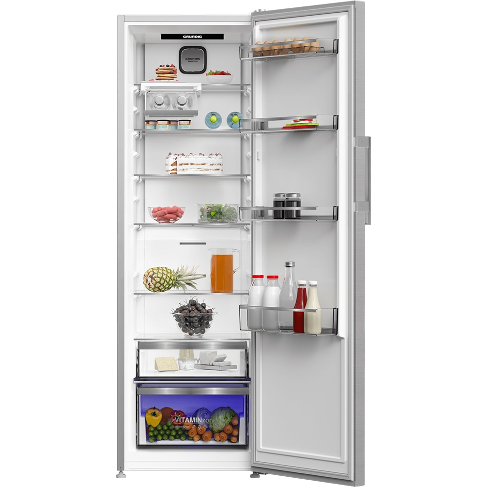 Frigider cu o usa GRUNDIG GLPN66820X, No Frost, 365 l, H 186 cm, Clasa E, inox