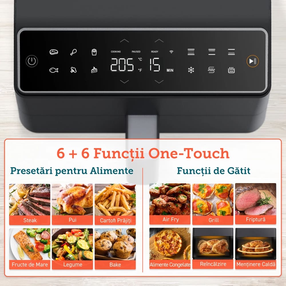 Friteuza cu aer cald COSORI Dual Blaze CAF-P681S-KEUR, 6.4l, 1700W, gri inchis-negru