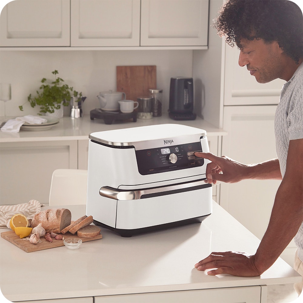 Friteuza cu aer cald dubla NINJA Foodi FlexDrawer AF500EUWH, 4kg, 10.4l, 2470W, alb-argintiu