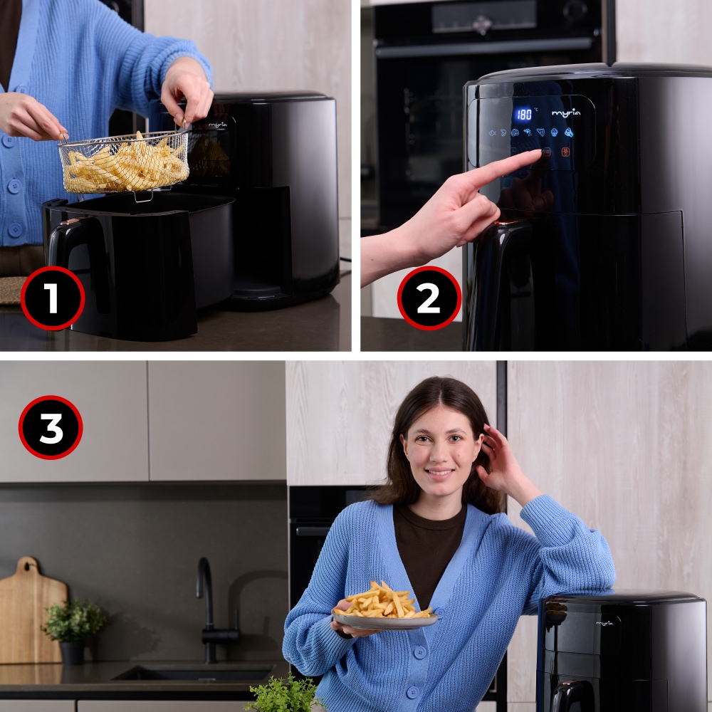 Friteuza cu aer cald MYRIA MY4467, 6,5l, 1700W, negru
