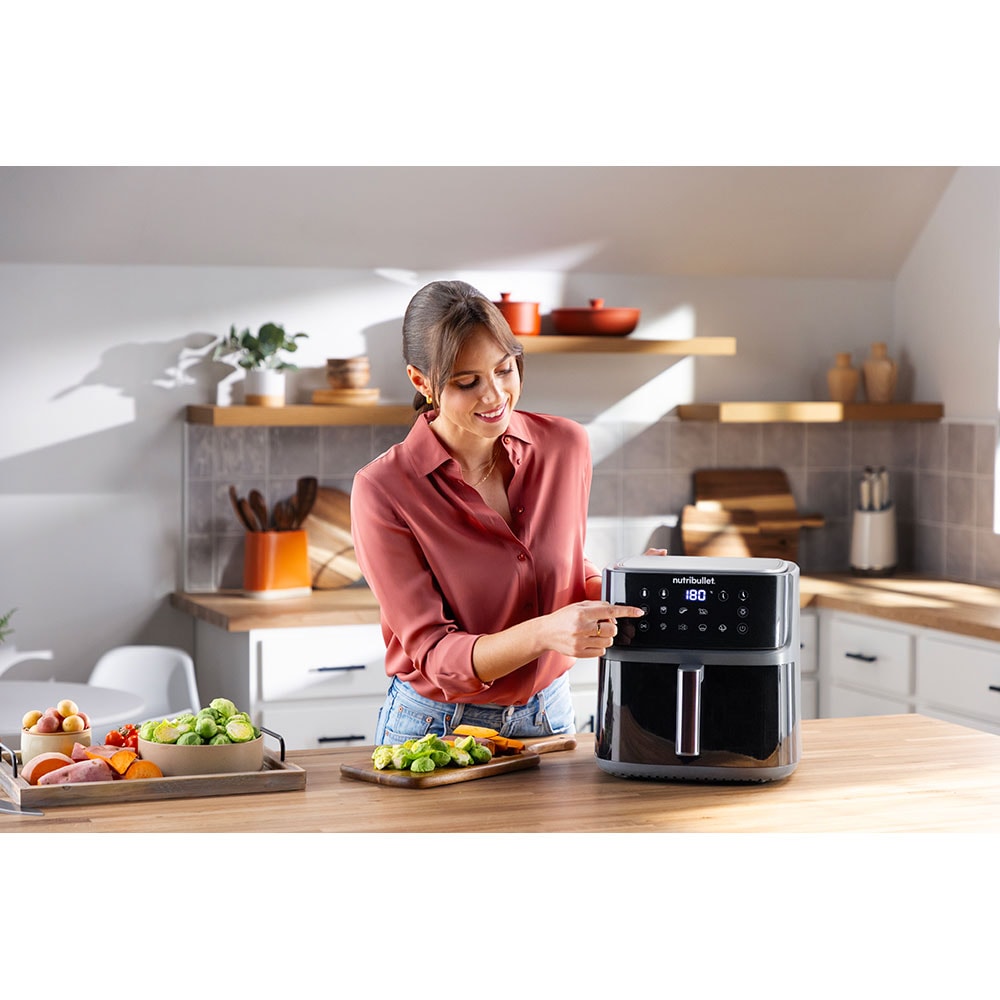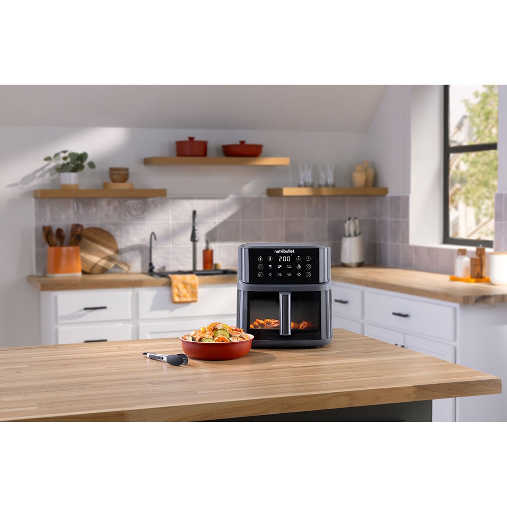 Friteuza cu aer cald NUTRIBULLET CrispLite Vision NBA0811DG, 8l, 2.6kg, 2000W, negru-gri inchis