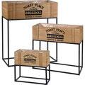 Ghiveci flori cu suport KI HZ1970020, metal-lemn, 3 bucati, maro-negru