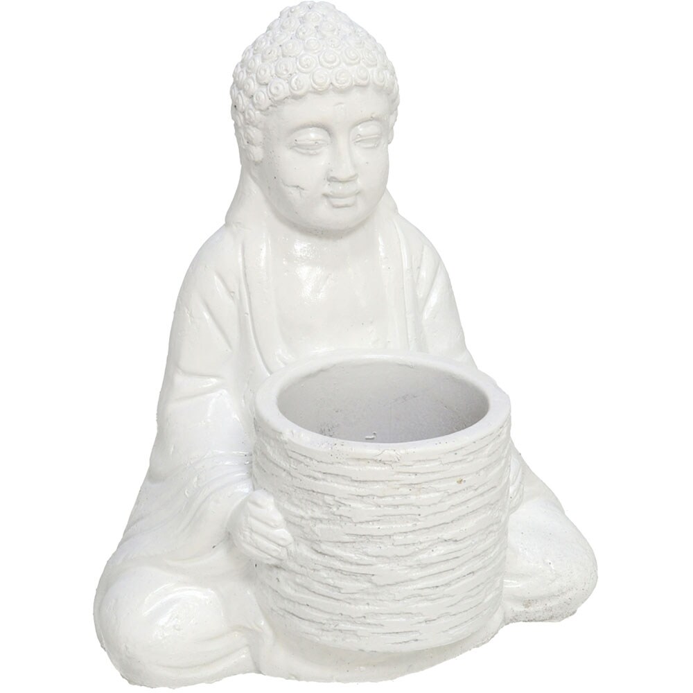 Ghiveci flori DECOR Buddha, compozit, 15 x 18 x 21 cm, alb