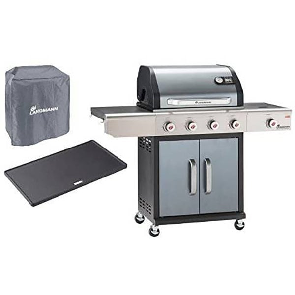Gratar pe gaz LANDMANN TRITON 4.1 Cook Plus, 65 x 44 cm, 4 + 1 arzatoare, 4 role, argintiu