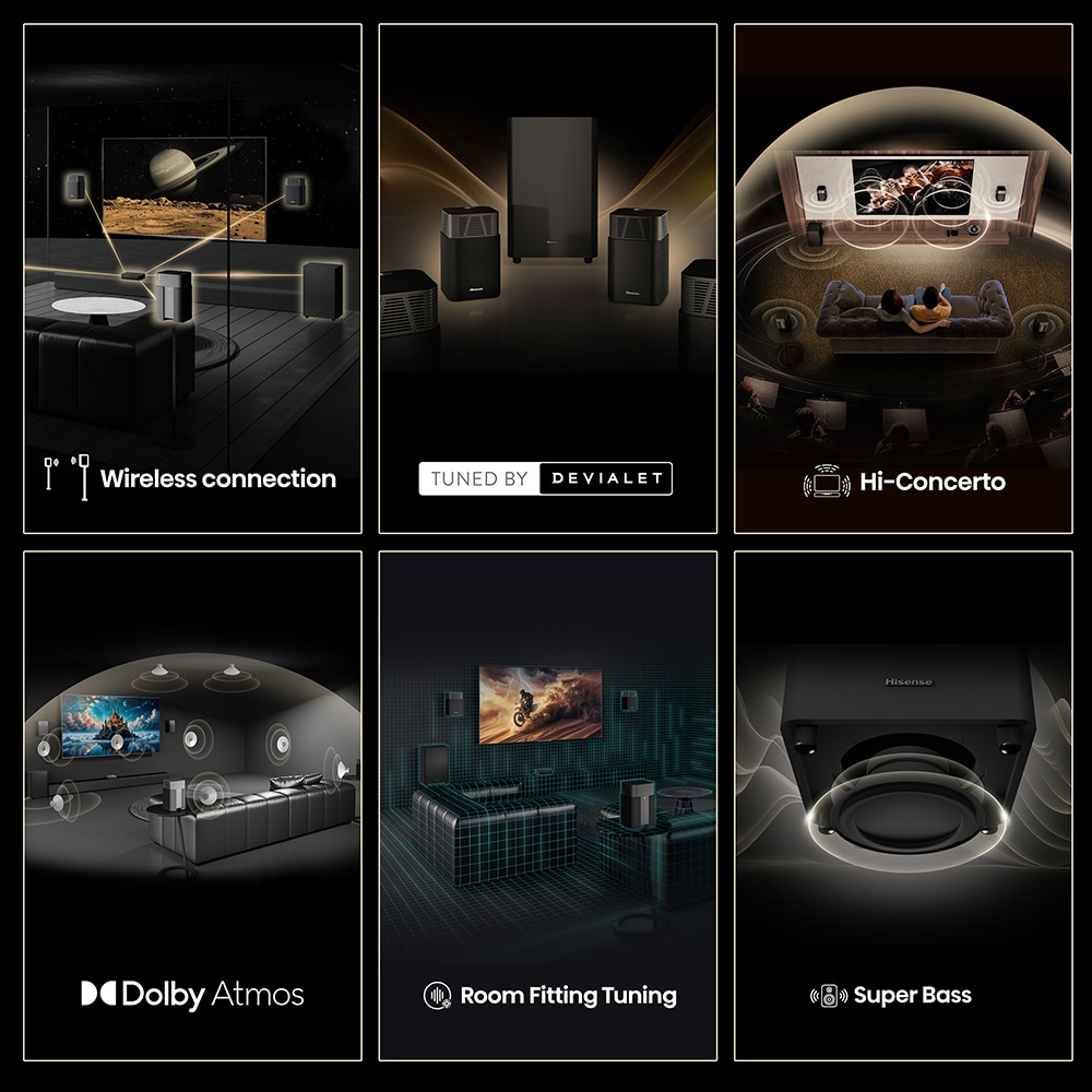 Home Theatre Hisense HT Saturn 4.1.2 CH, 720W, Wireless Subwoofer