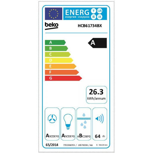 Hota BEKO HCB61734BX, 680m3/h, 1 motor, 100W, 60cm, inox
