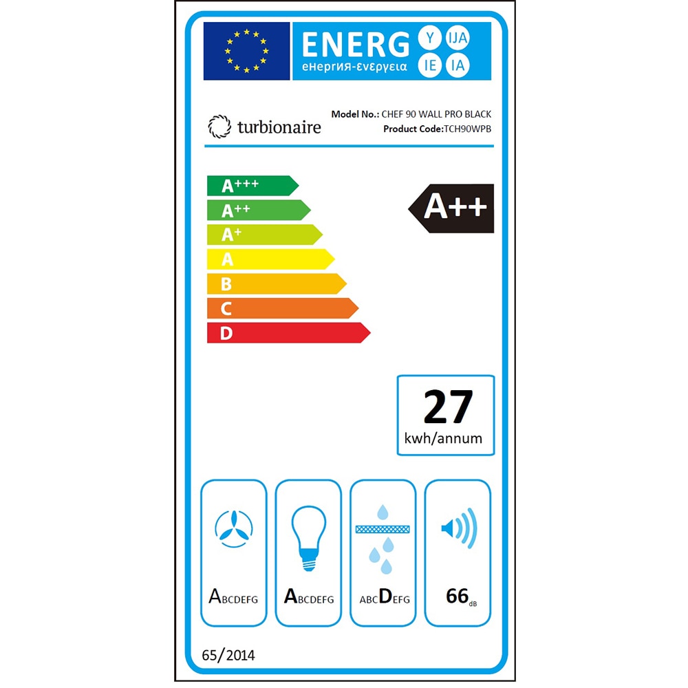 Hota decorativa TURBIONAIRE Chef 90 Wall Pro Black THC90WPB, 1 motor, 721 m3/h, L 90 cm, negru