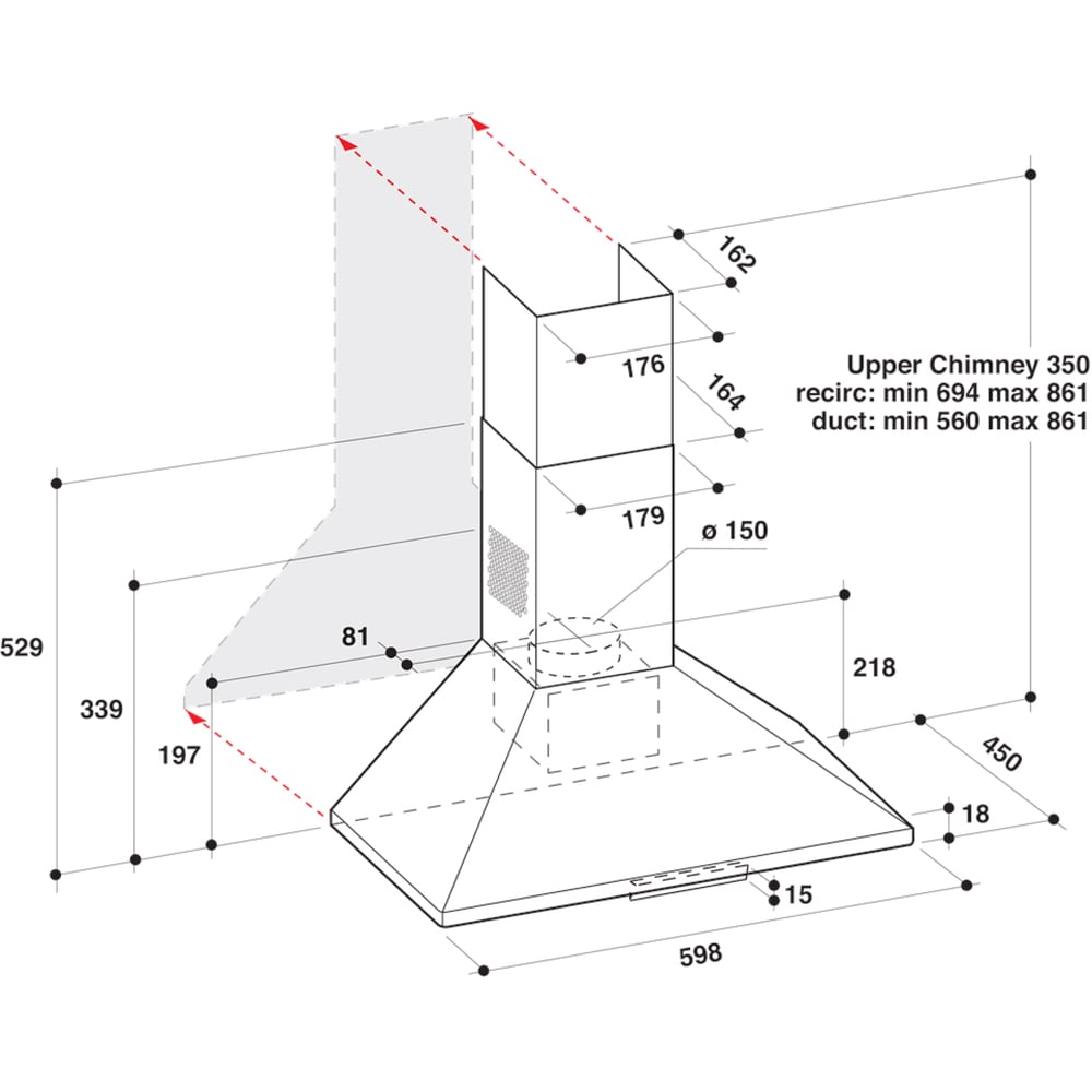 Hota decorativa WHIRLPOOL AKR 685/1 IX, 1 motor, 395, m3/h, L 60 cm, inox
