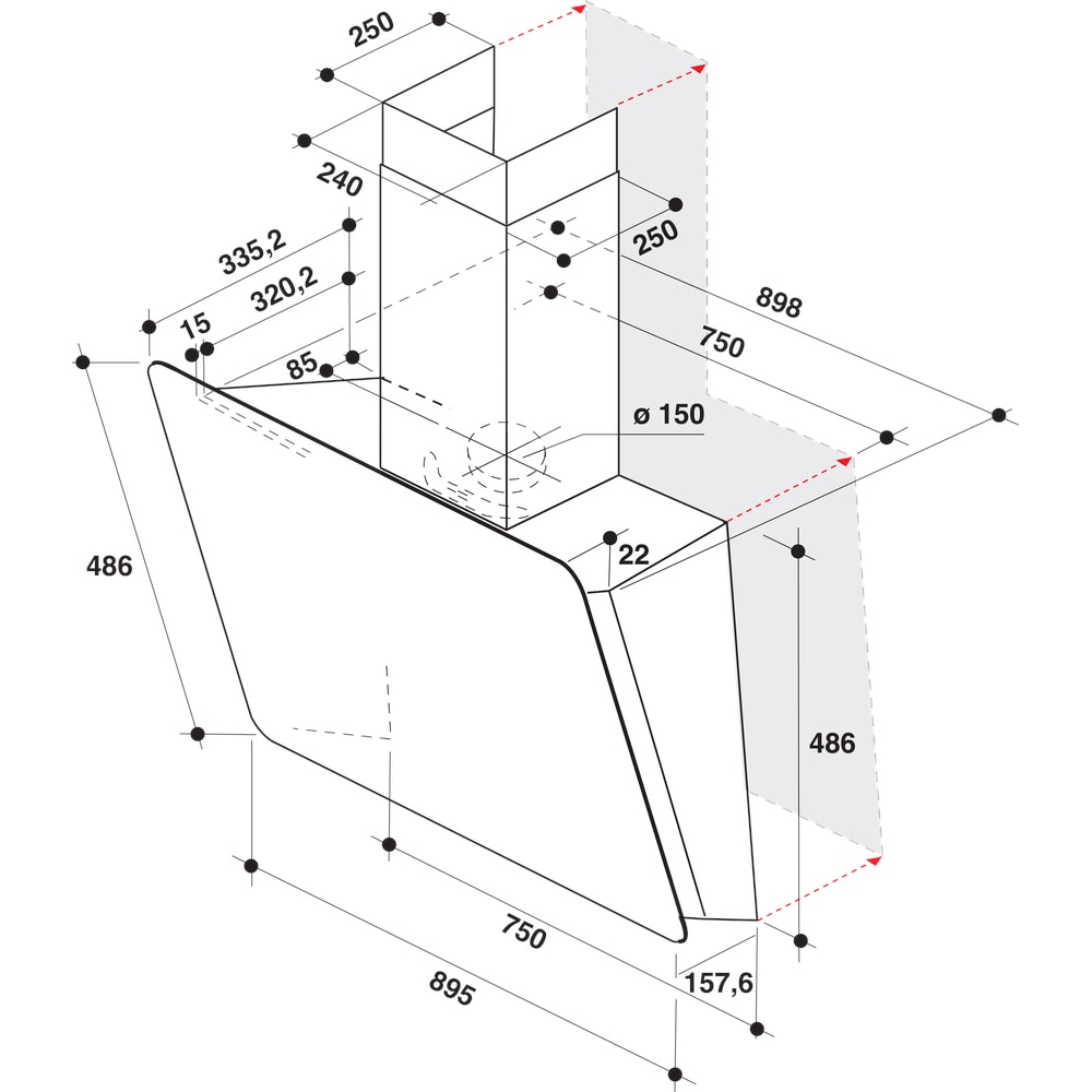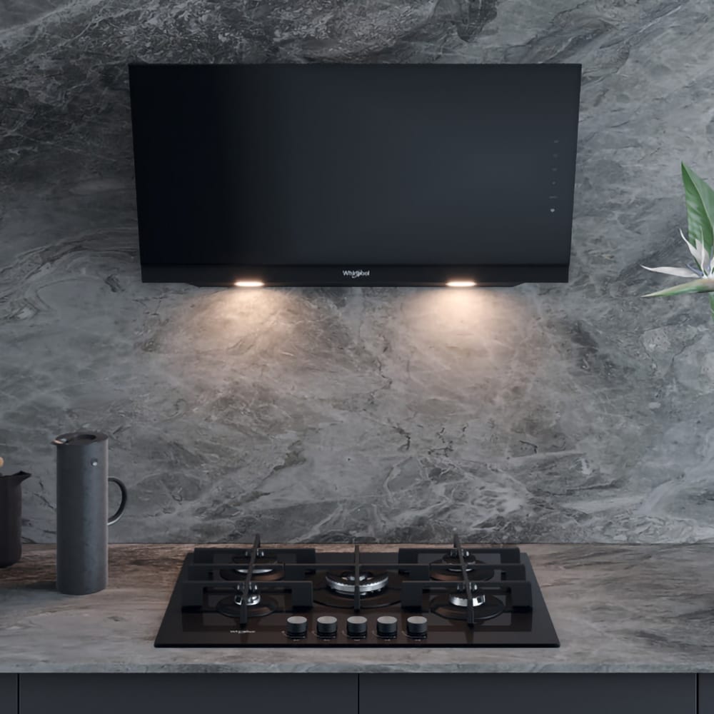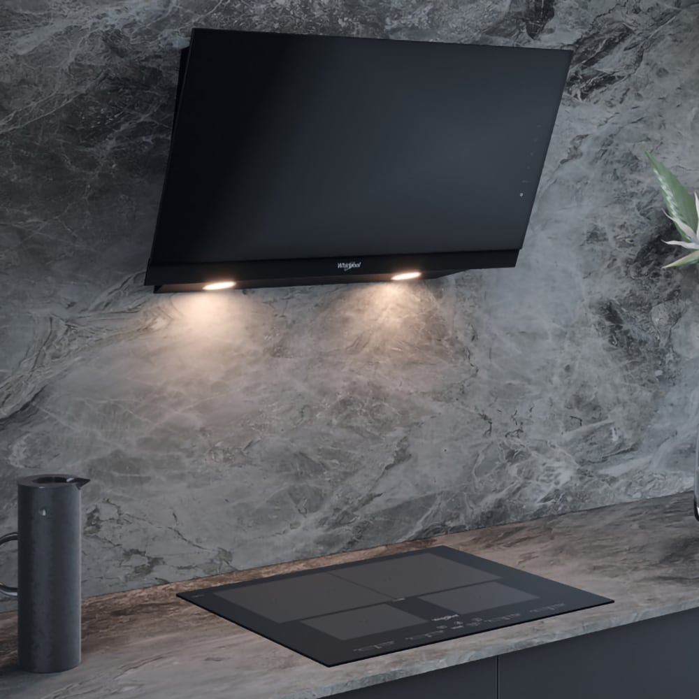 Hota decorativa WHIRLPOOL WHVS 93F LT BSS/1, 1 motor, 640 m3/h, L 90 cm, negru