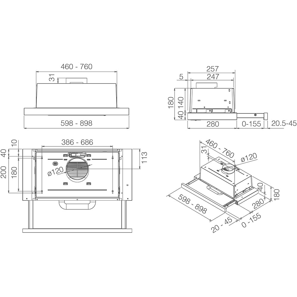 Hota incorporabila telescopica ELICA Elite 14 Lux BL/A/60, 1 motor, 368 m3/h, L 60 cm, negru