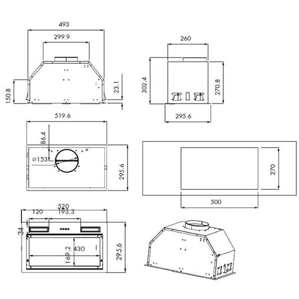 Hota incorporabila TURBIONAIRE Amira 50 S TAM50S, 1 motor, 476 m3/h, L 52 cm, argintiu