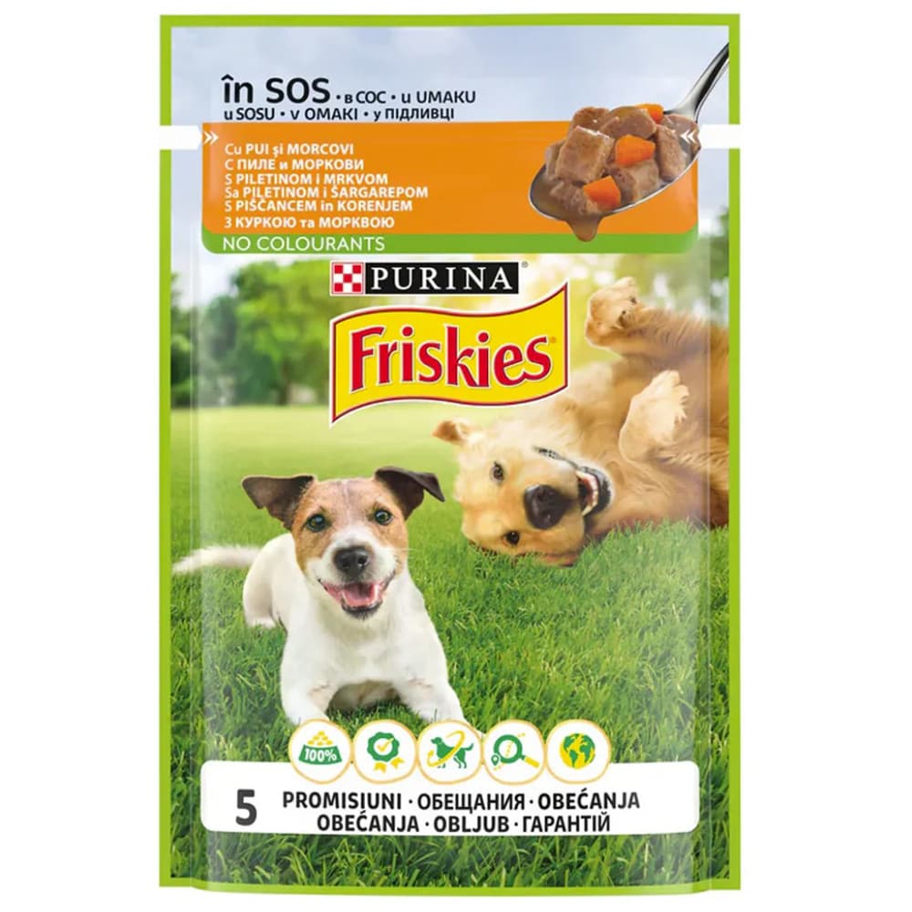 Hrana umeda pentru caini FRISKIES, Adult, Pui si morcovi in sos, 26 x 85g