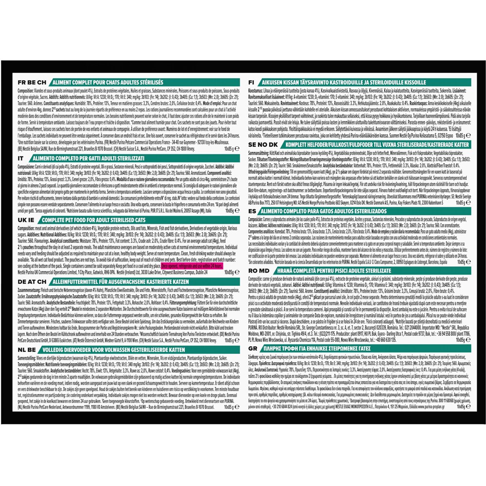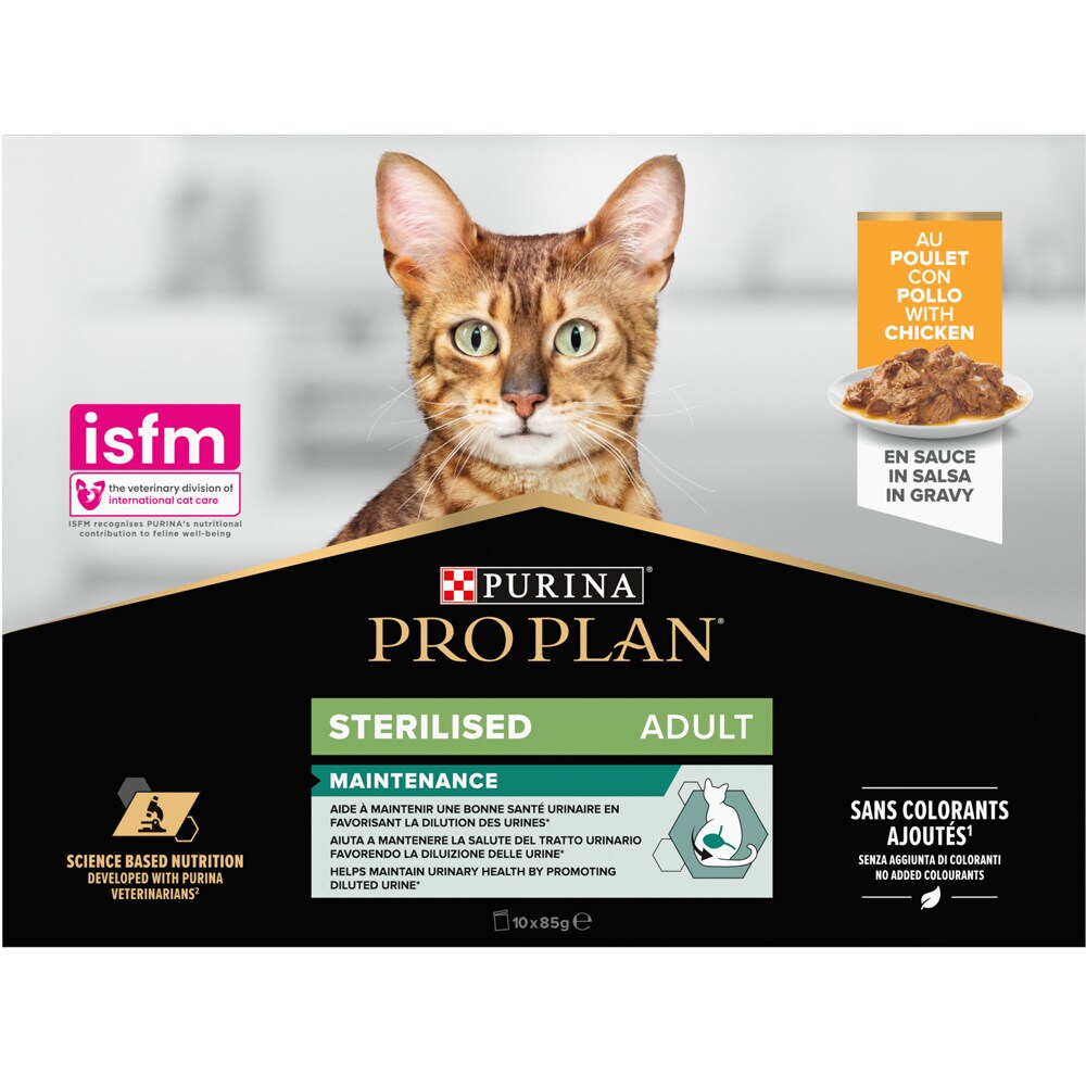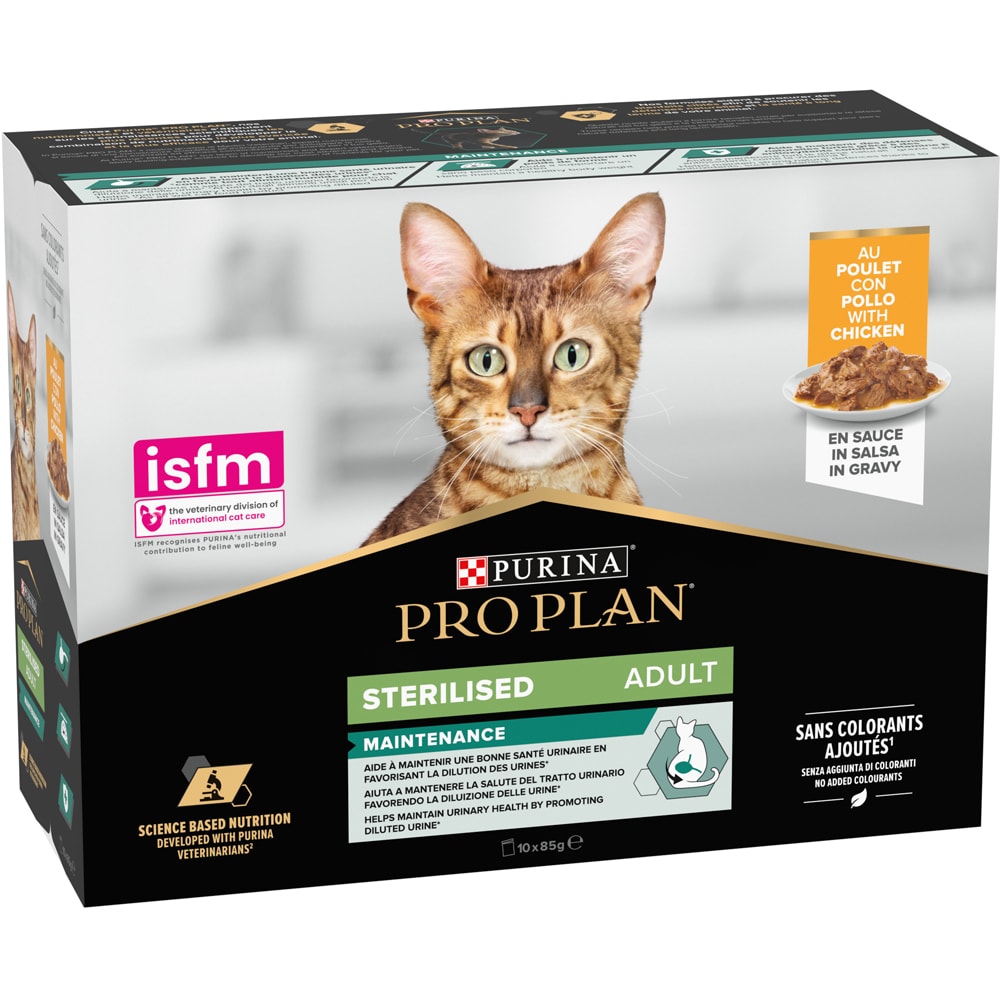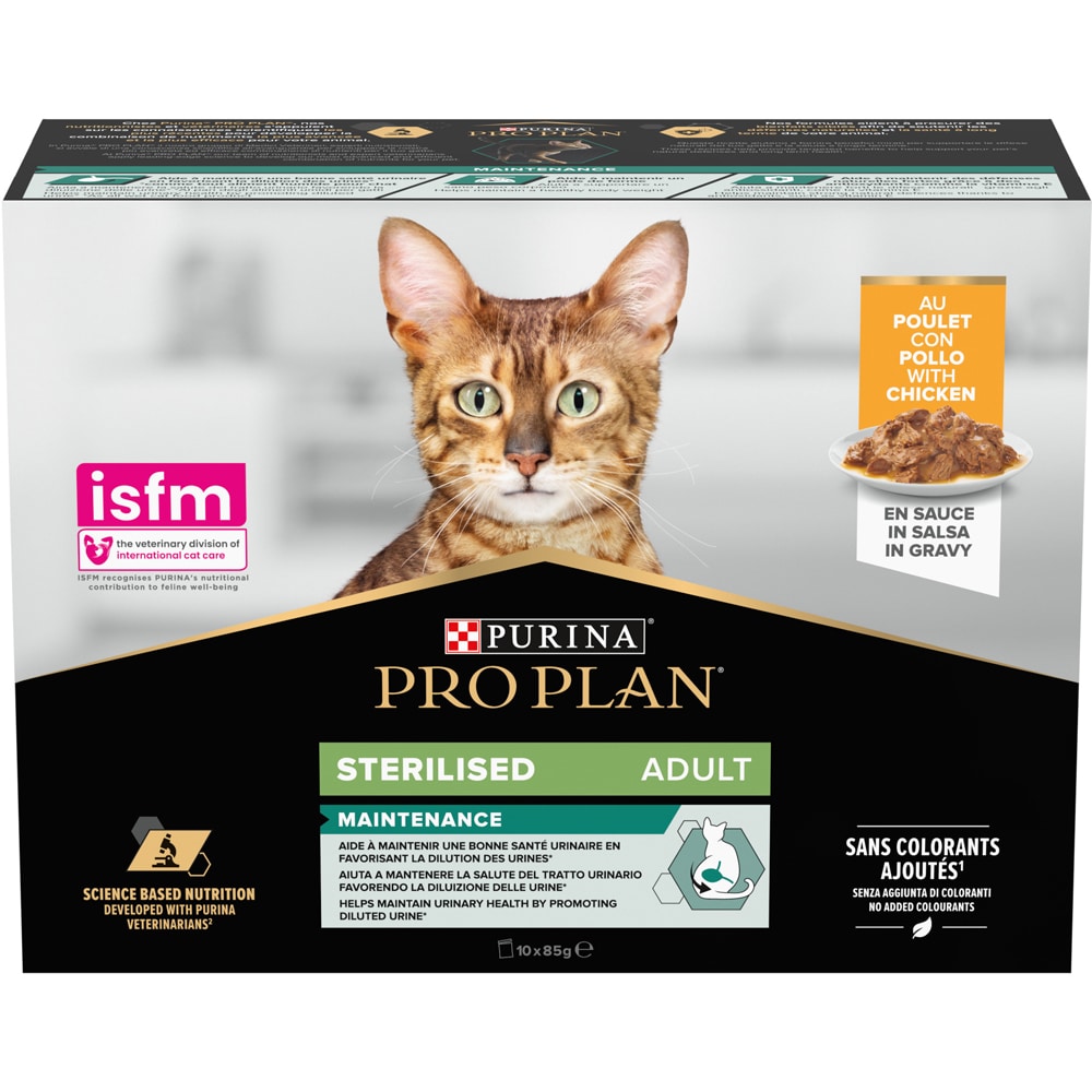 Hrana umeda pentru pisici PURINA PRO PLAN NutriSavour, Sterilised, Pui in sos, 10 x 85g