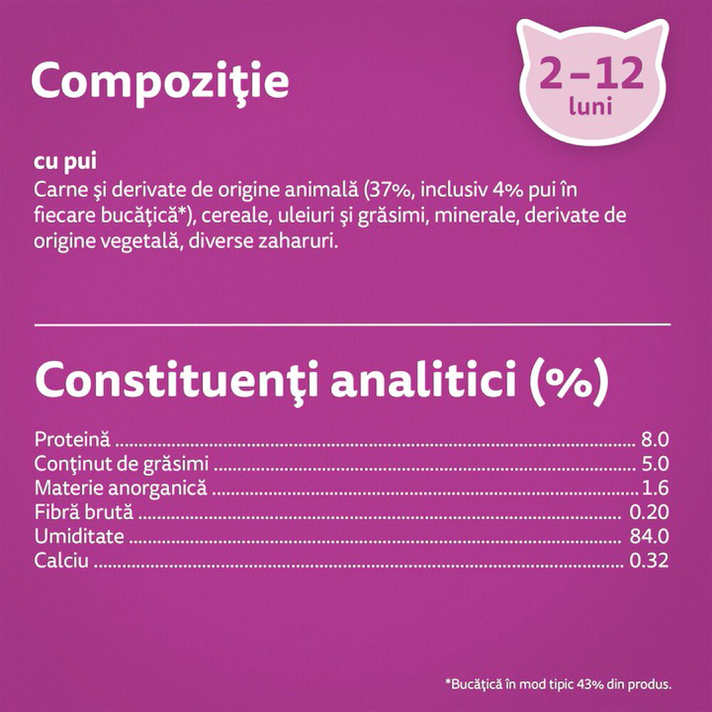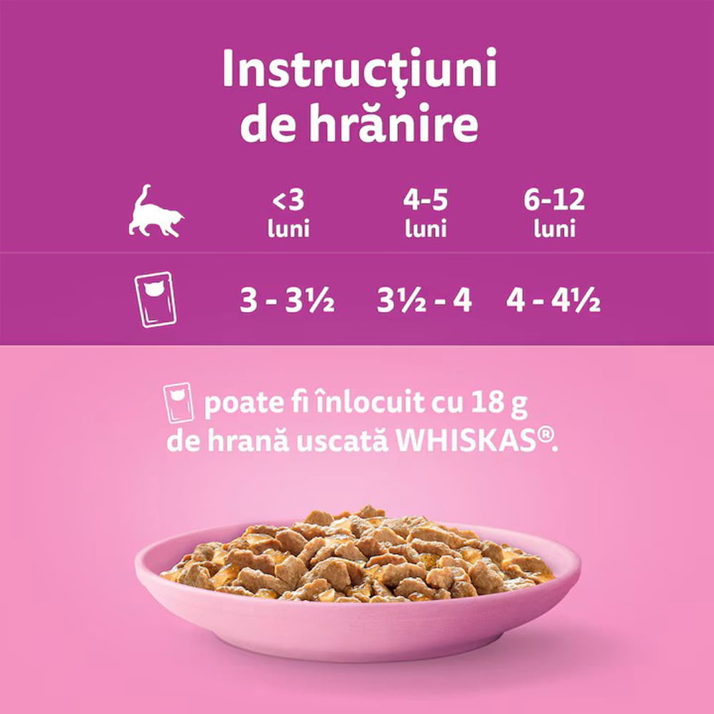 Hrana umeda pentru pisici WHISKAS, Junior, Pui in aspic, 28 x 85 g