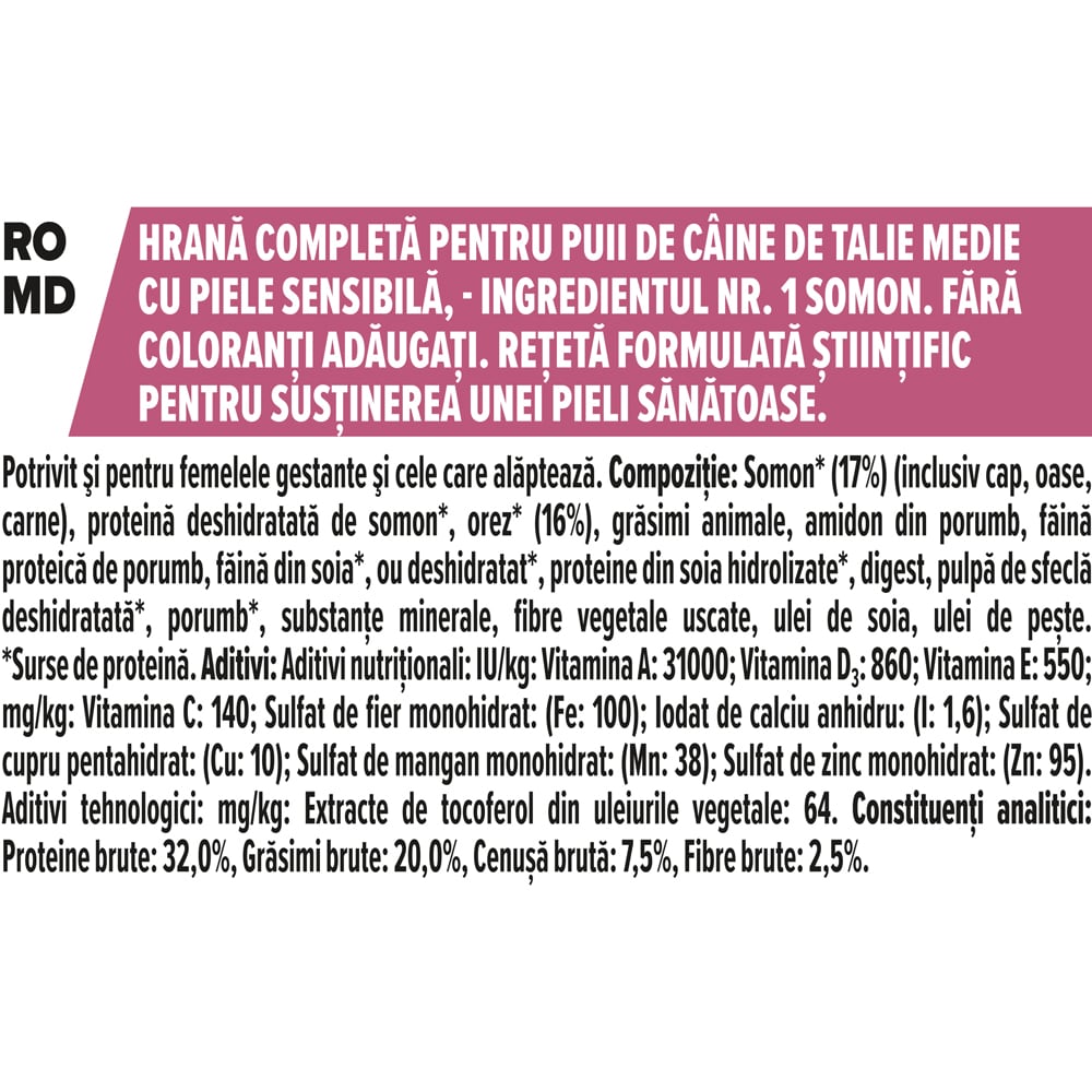 Hrana uscata pentru caini PURINA PRO PLAN Medium, Sensitive Skin, Junior, Somon, 12 kg