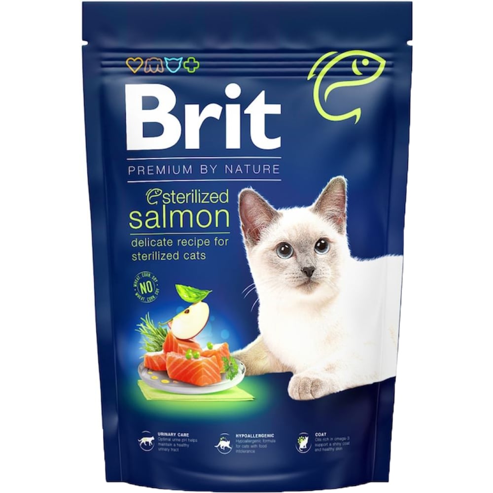 Hrana uscata pentru pisici BRIT Premium by Nature Sterilized, Adult, Somon, 1.5 kg