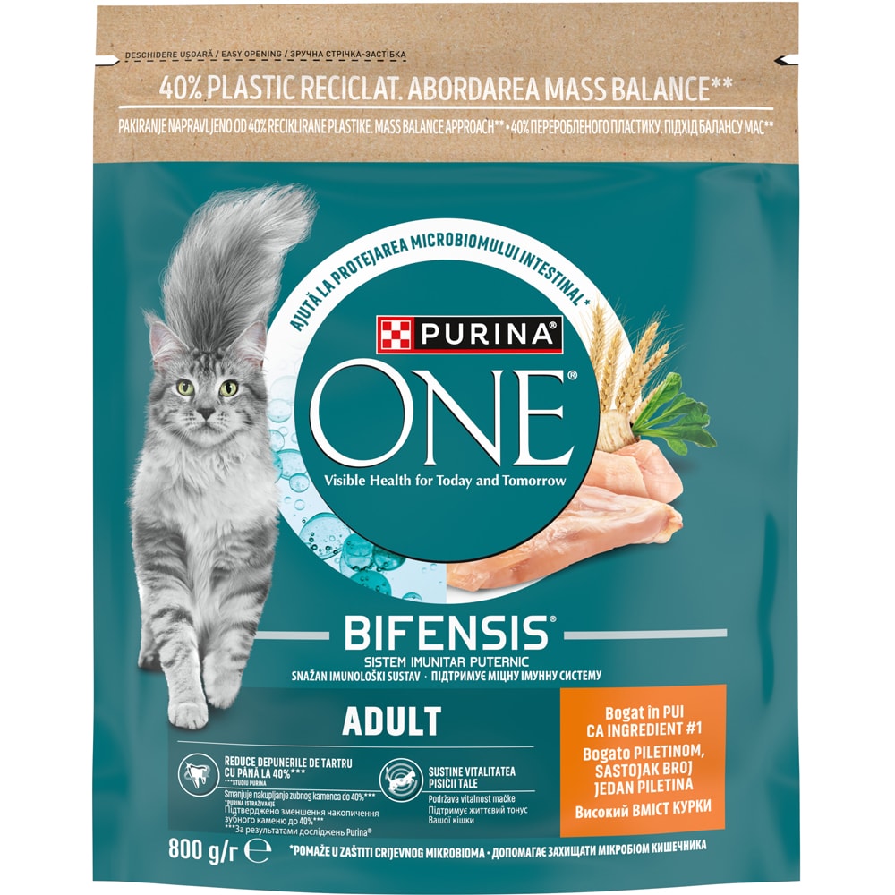 Hrana uscata pentru pisici PURINA ONE, Adult, Pui si cereale integrale, 800 g