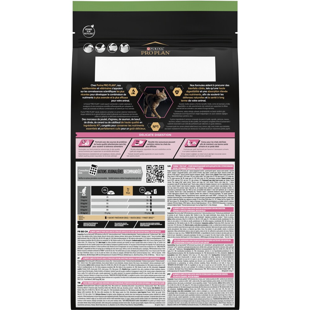 Hrana uscata pentru pisici PURINA PRO PLAN Delicate Digestion, Sterilised, Pui, 1.5 kg